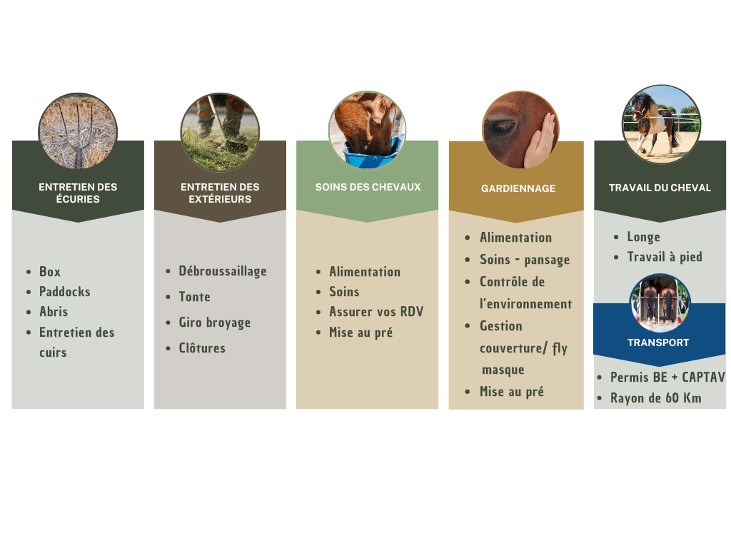 Entretien complet pour vos installations équestres. Soins personnalisés pour chaque besoin.